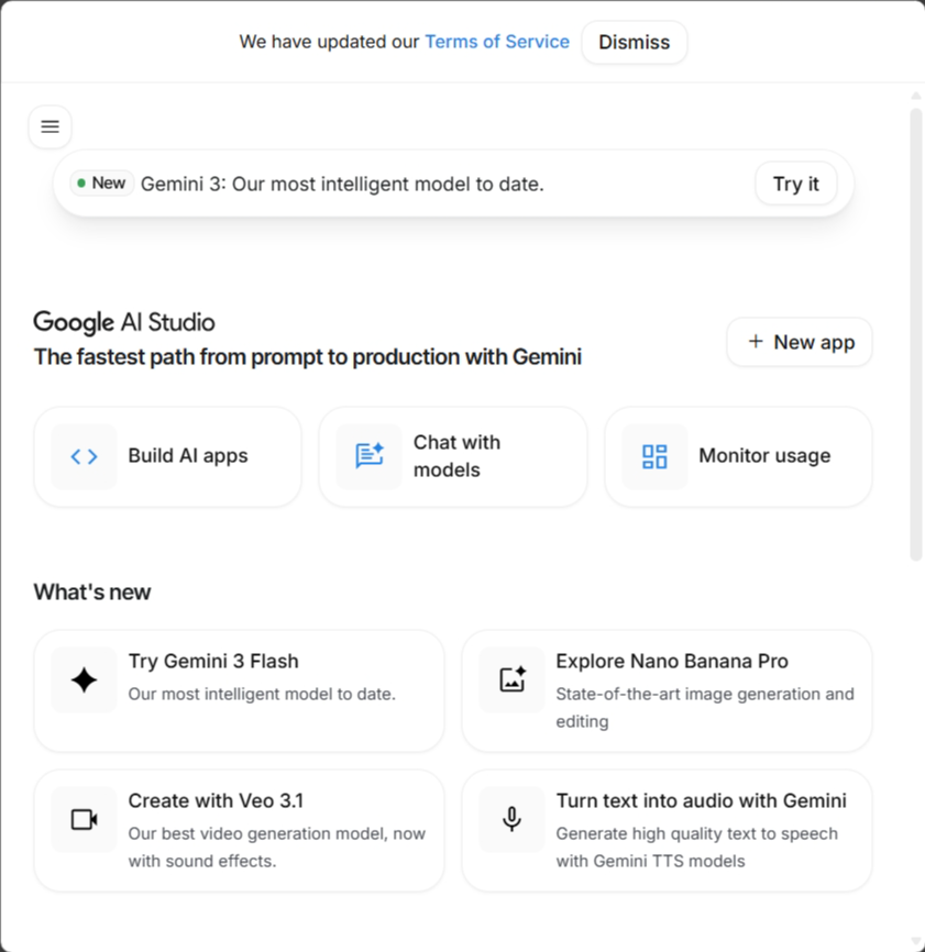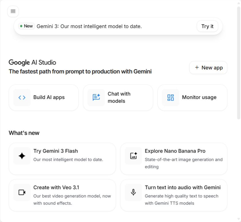 - 이제 AI Studio에서 앱을 만들기 시작합니다.