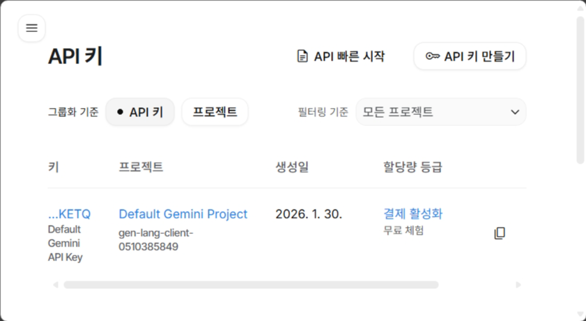 이것으로는 Google AI Studio를 사용할 수 없으니 유료 등급으로 만듭시다.