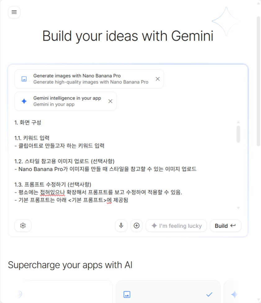 Generate images with Nano Banana Pro와Gemini intelligence in your app을 선택합니다.- 동영상 제작이나 음성입력, 논리추론 같은 기능은 그다지 필요하지 않습니다.