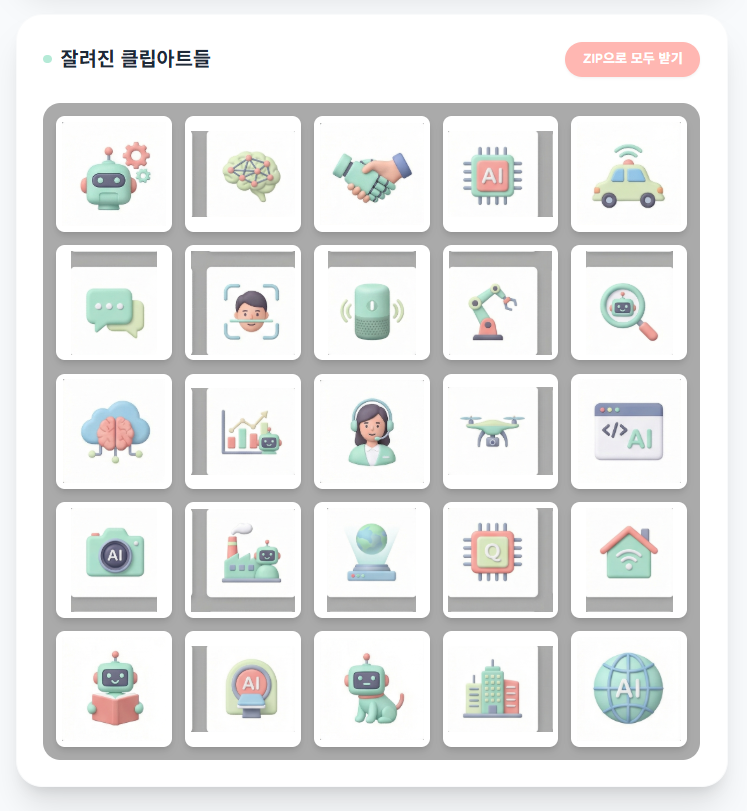 - 전체 그림과 함께 이렇게 잘려진 그림들을 확인하고 내려받는 프로그램을 만듭니다.