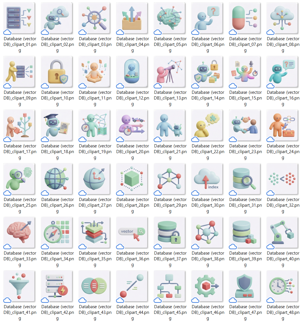 - 데이터베이스, 인공지능, 에이전트 이렇게 세 종류의 클립아트를 그리기를 원한다면,